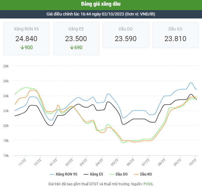 Chiều 11/10, liên Bộ Tài chính, Bộ Công Thương thông báo thay đổi giá bán lẻ xăng dầu trong kỳ điều chỉnh mới. Thời gian áp dụng bắt đầu từ 16h.