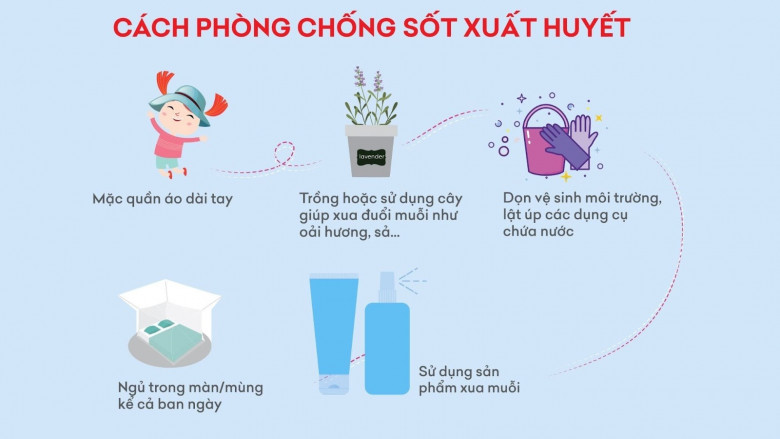 Bên cạnh đó, cần chủ động phòng tránh bệnh hơn chữa bệnh bằng cách phòng ngừa muỗi đốt, tiêu diệt môi trường sống của muỗi, diệt lăng quăng. Nhiều người nghĩ rằng muỗi không bay được cao nên không thể xuất hiện ở các chung cư tầng cao. Thực tế muỗi có thể theo thang máy để đi lên và tại các lầu nếu có nơi chứa nước tạo điều kiện cho muỗi sinh sản và phát triển thì vẫn có thể tạo thành ổ dịch.