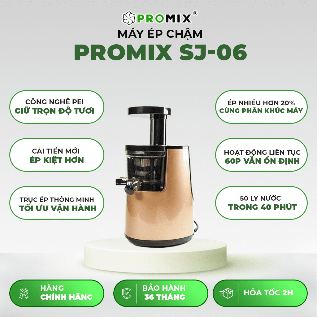-Công nghệ ép nhanh tiên tiến: Máy ép nhanh Promix sử dụng công nghệ ép tiên tiến giúp tách nước ép khỏi bã một cách hiệu quả, giữ nguyên dưỡng chất và hương vị tự nhiên của trái cây, rau củ. Với tốc độ ép nhanh, bạn có thể thưởng thức nước ép tươi ngay lập tức mà không phải chờ đợi lâu.