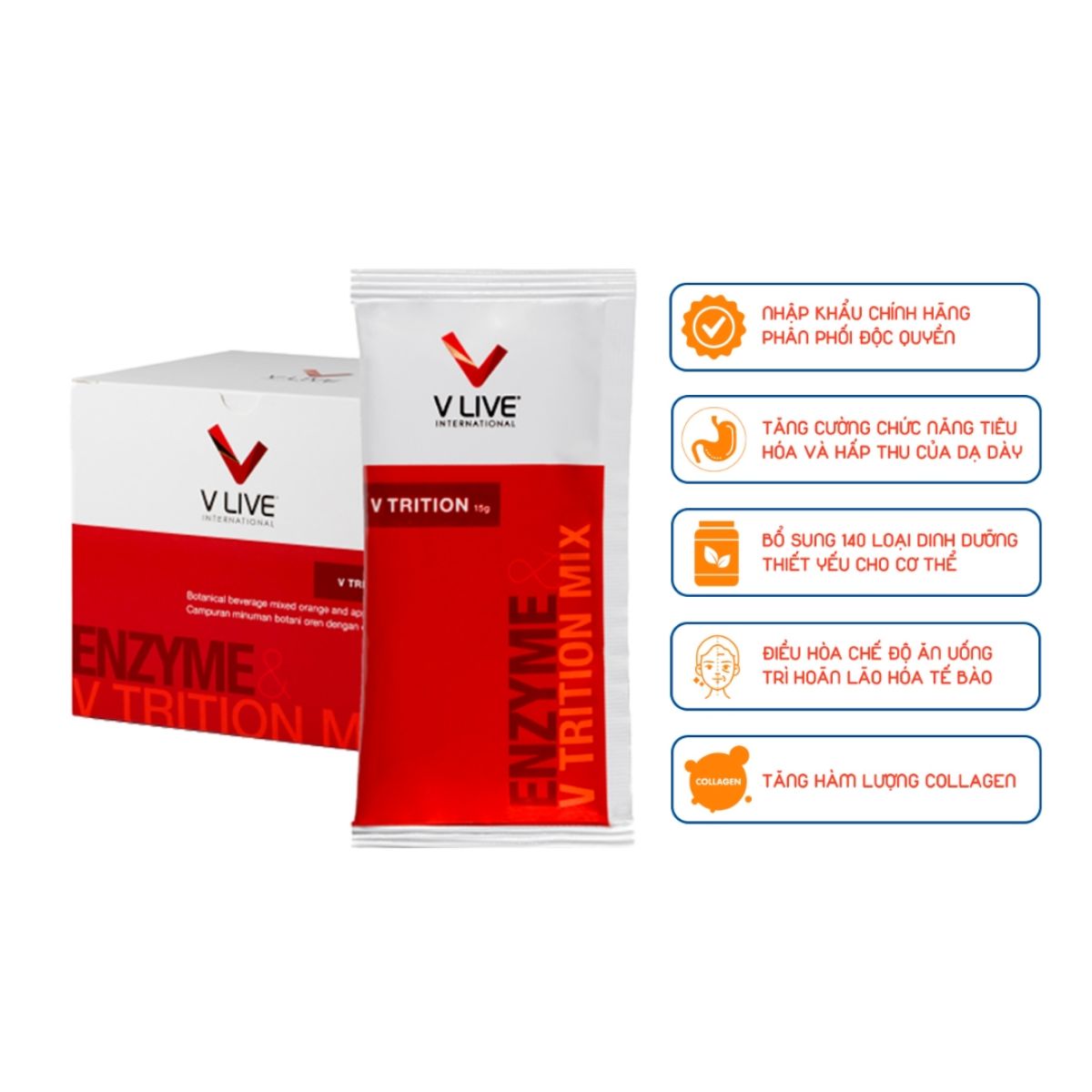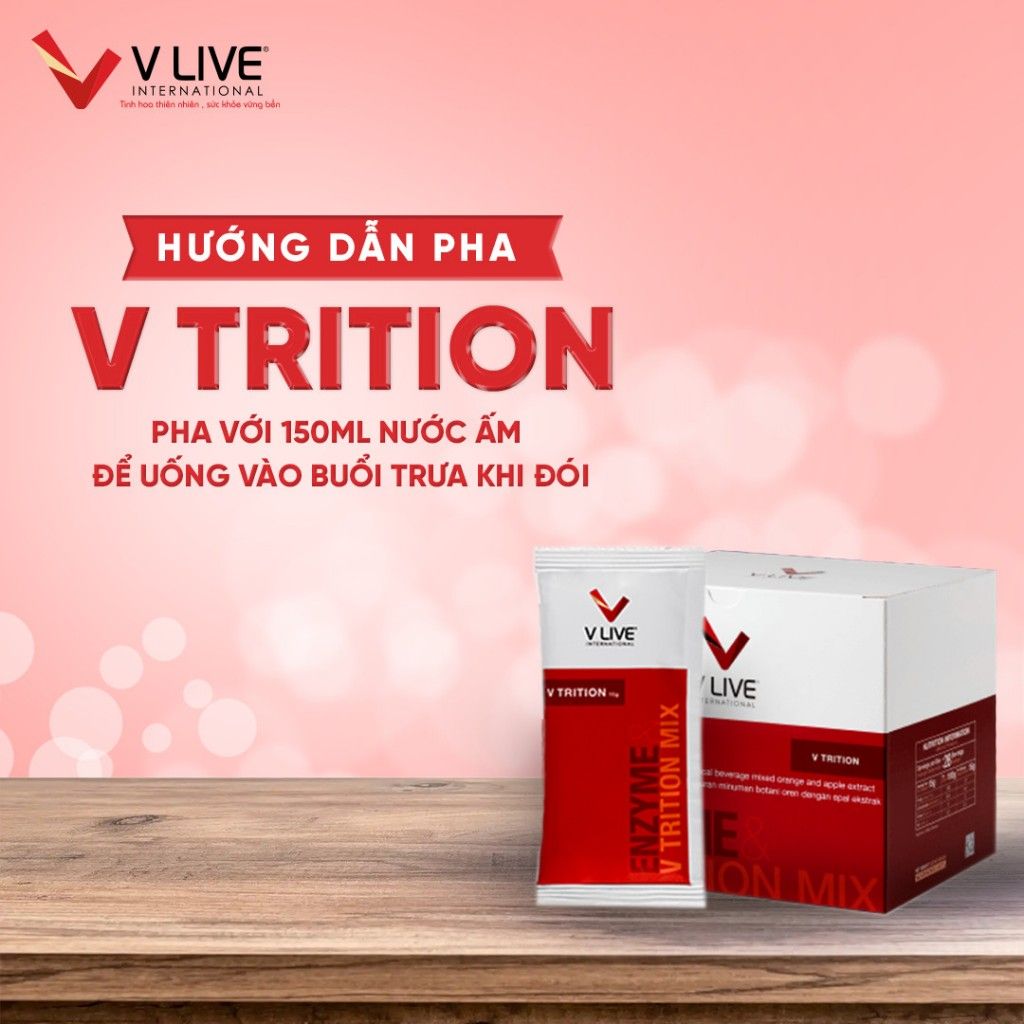 V Trition là sản phẩm chức năng cho tế bào có thể tăng cường chức năng tiêu hóa và hấp thu của dạ dày chúng ta, và do đó, nó có thể cải thiện trí nhớ và khả năng tư duy, chống lão hóa cơ thể, cũng như làm tăng tổng lượng collagen, làm đẹp da, loại bỏ các đốm trên da.